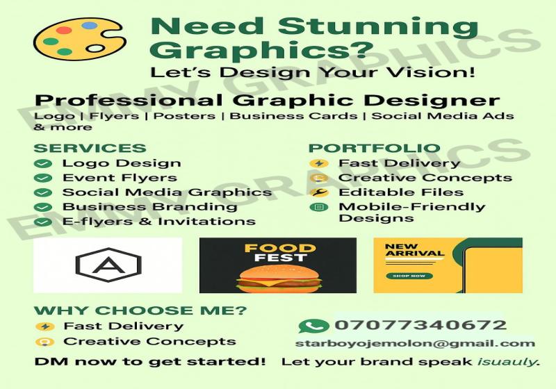 *I’m a creative and detail-oriented graphic designer with experience in logo design, social media graphics, and flyer/banner creation. I specialize in using tools like Canva and Pixellab to bring visual ideas to life. I always focus on clean, modern designs that communicate clearly and attract attention. I’m passionate about delivering quality work on time and helping clients build their brand visually.*
